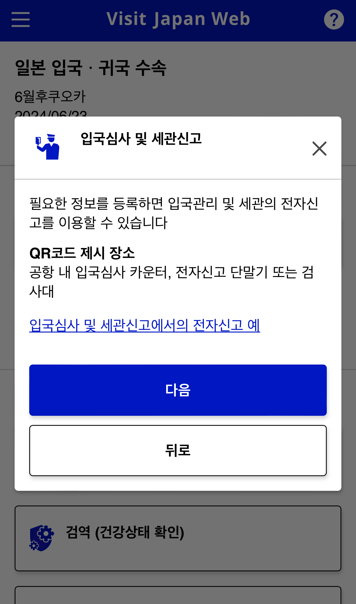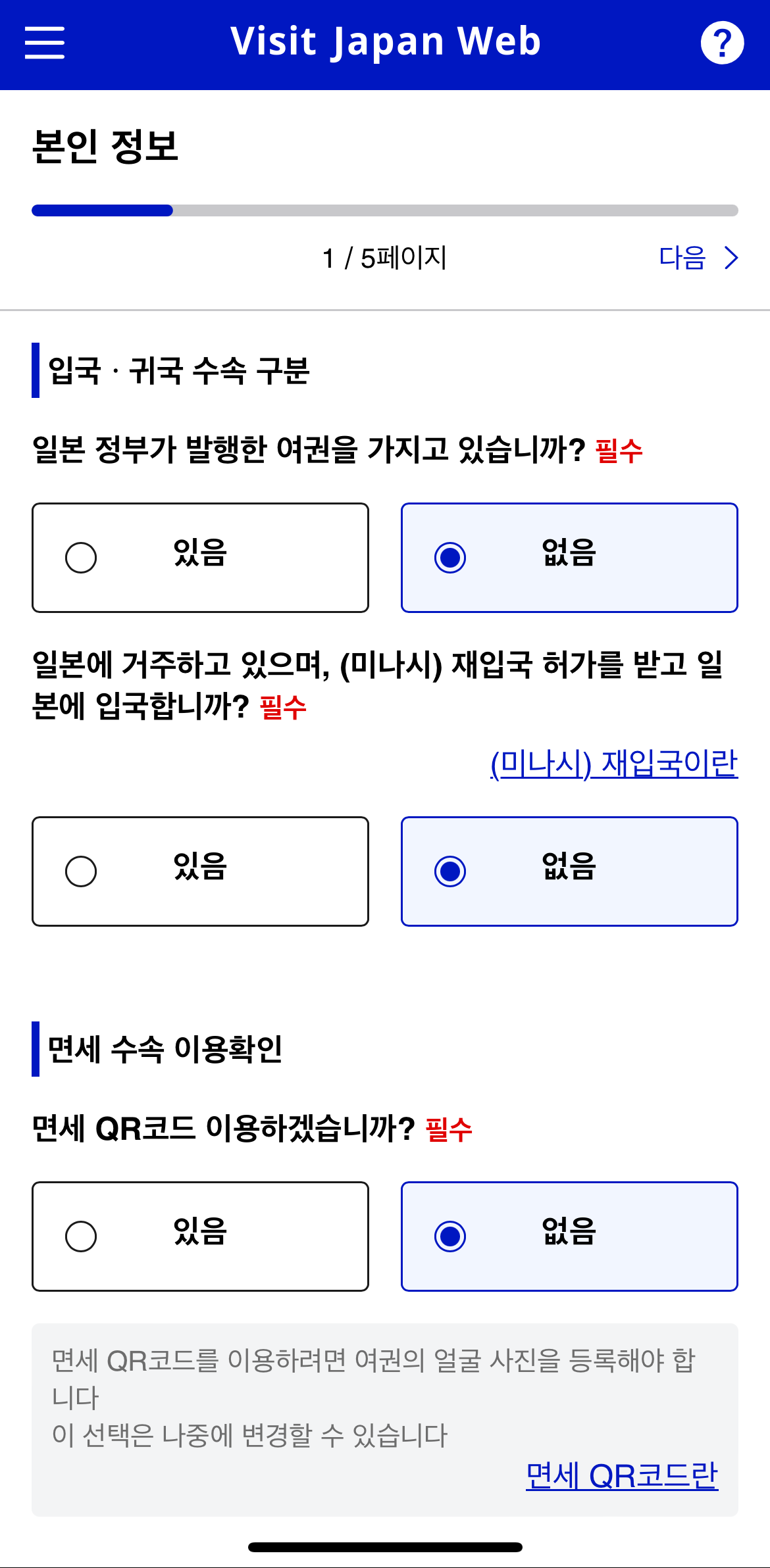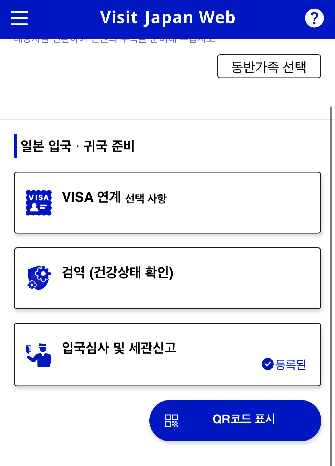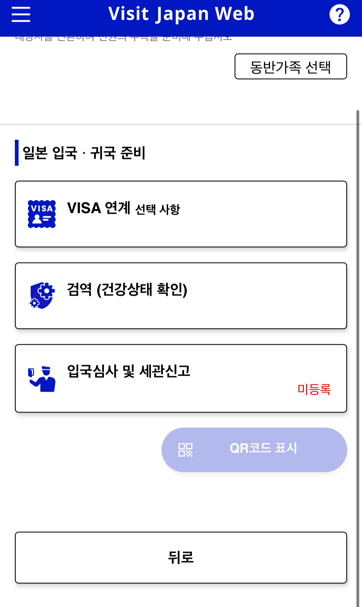 일본 입국심사 QR코드를 받기 위해