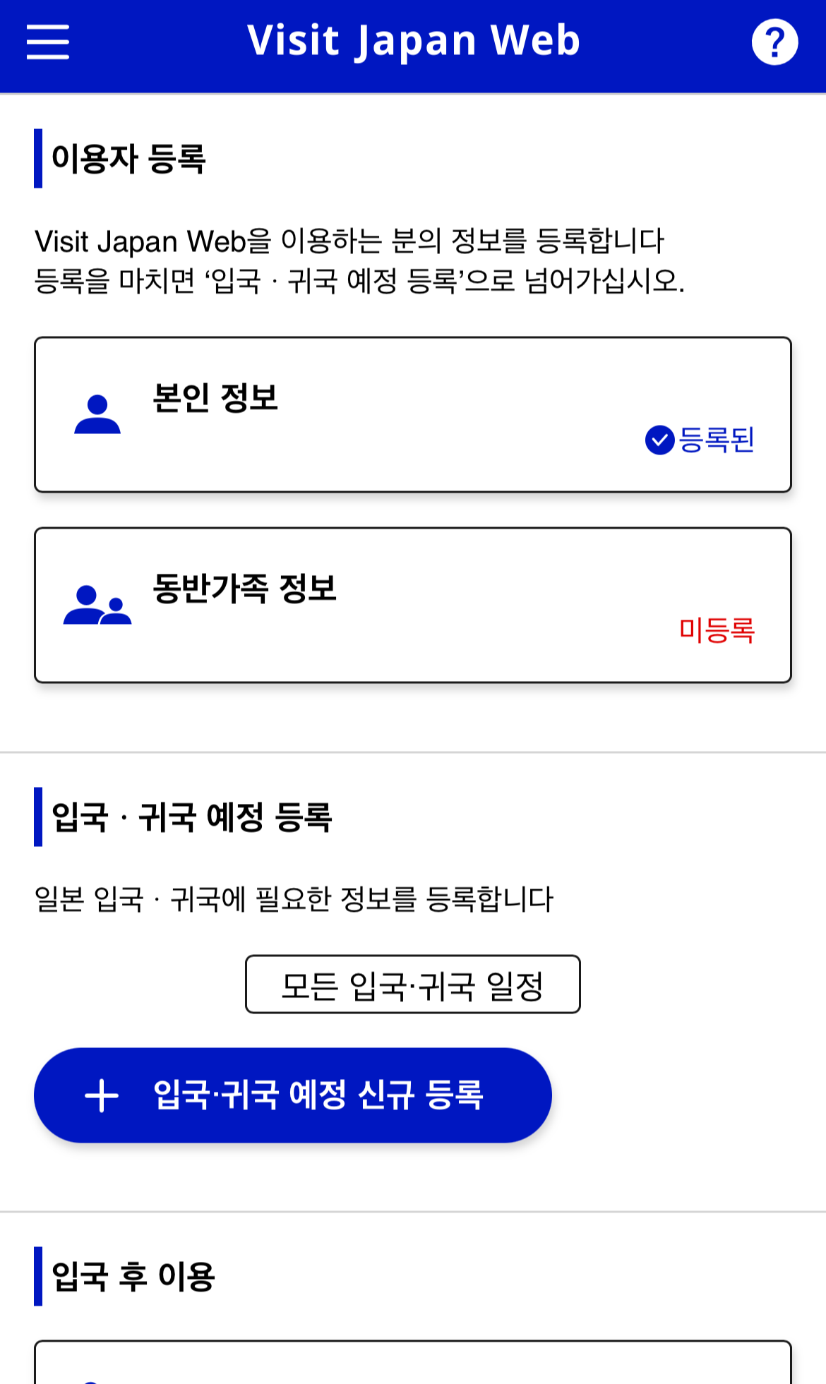 나의 정보를 등록하여 일본 입국심사