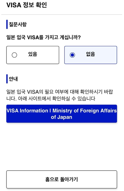 일본 비자는 필요 없기 때문에 없음 클릭해줍니다.