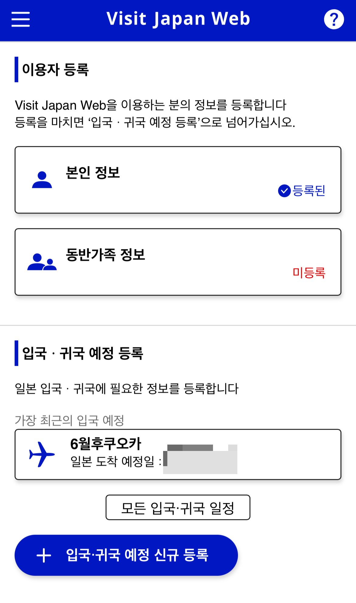 3단계 - 입국, 귀국 예정 등록