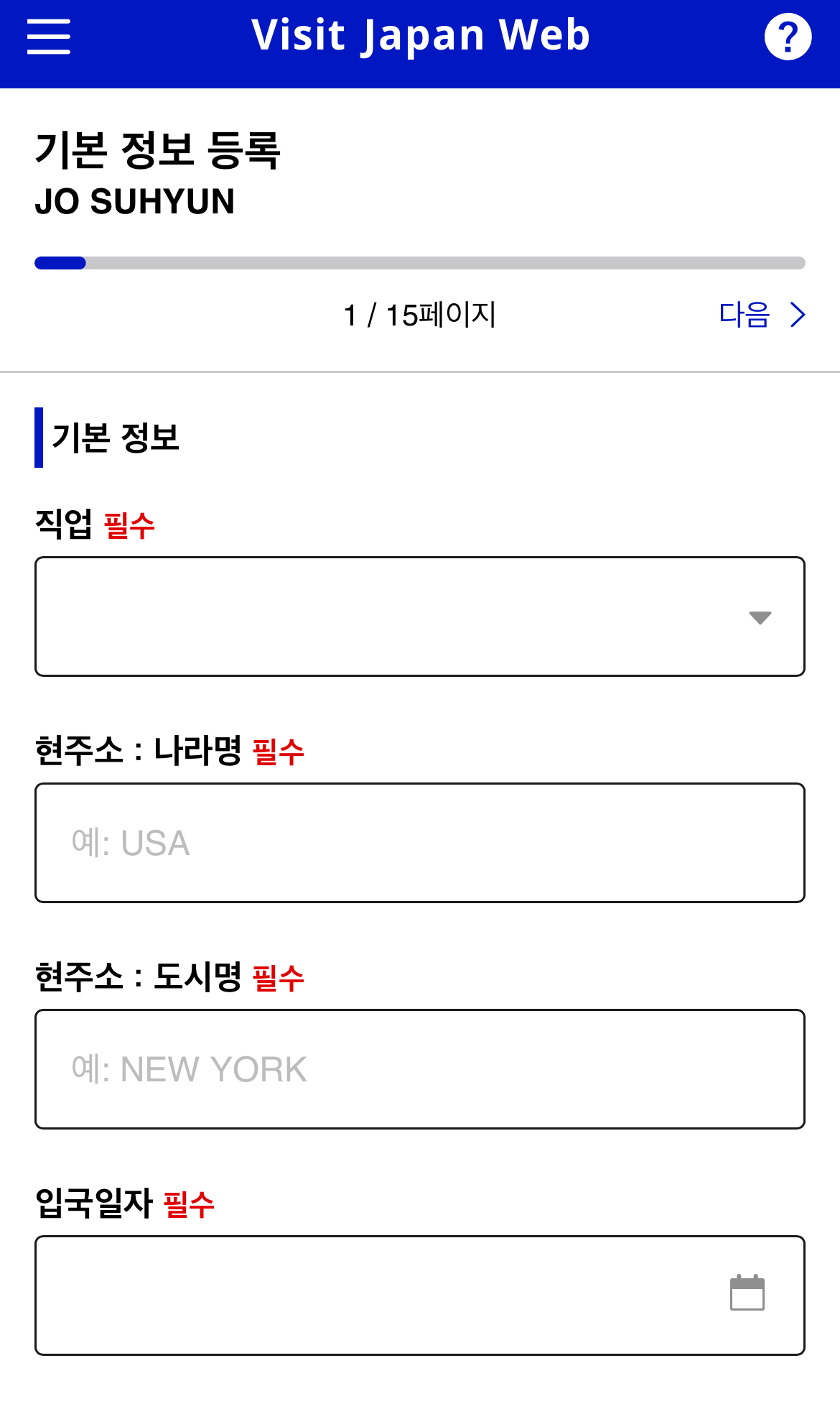 Visit Japan Web 등록방법 세번째는