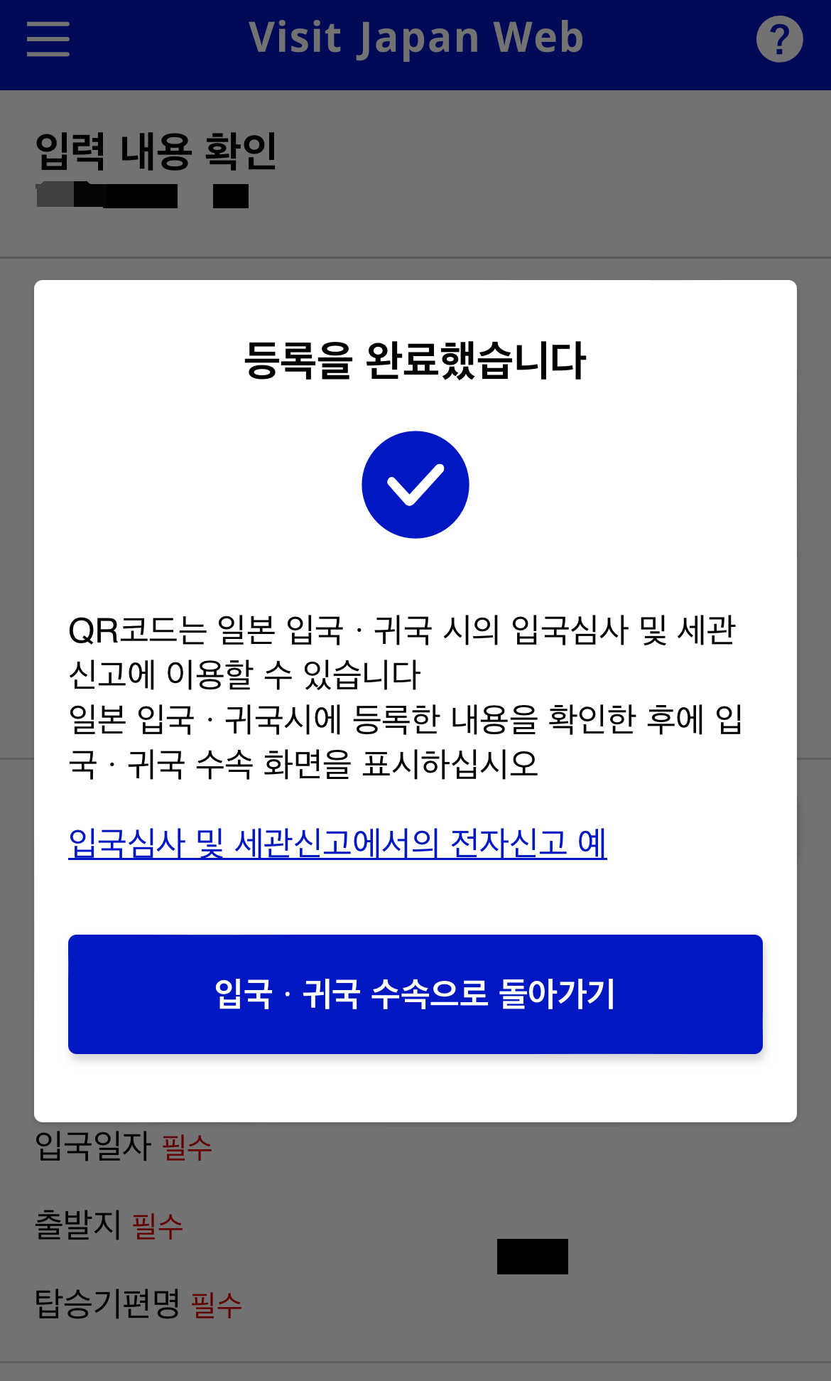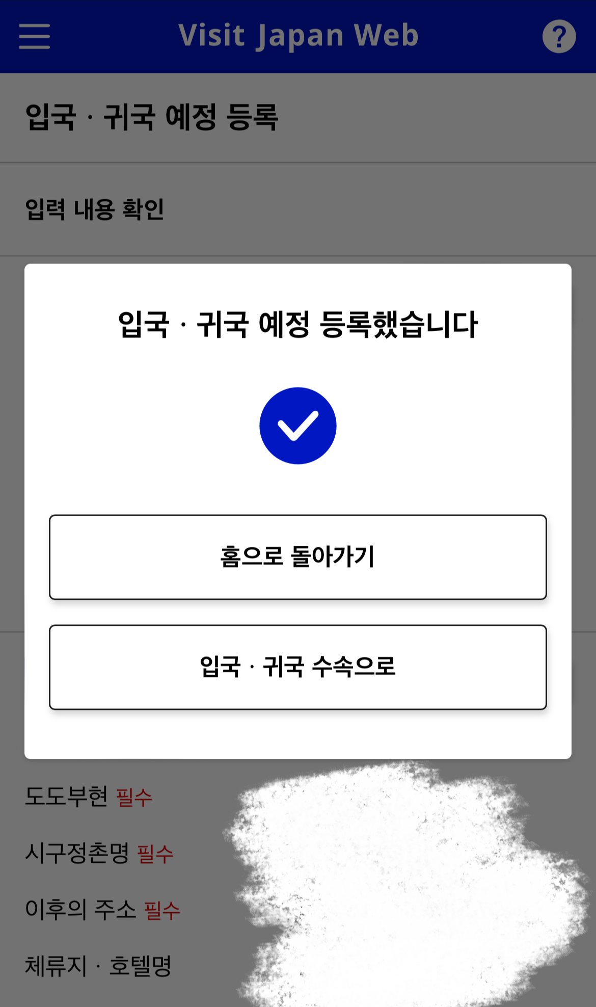 Visit Japan 등록완료라고 뜨면