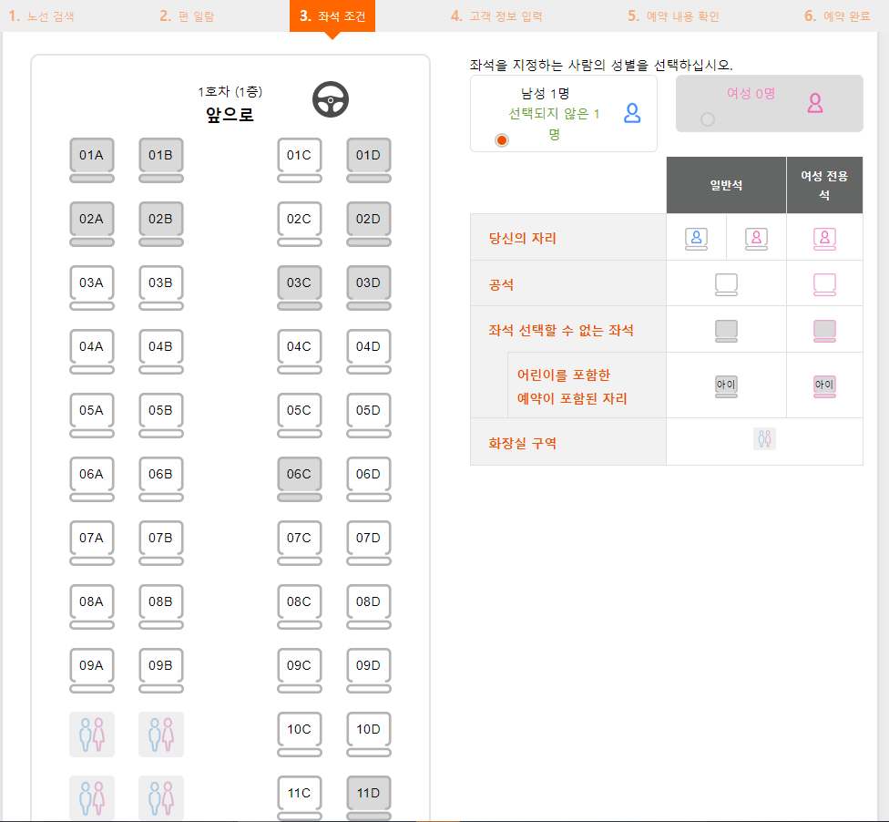 똑같이 시간대 별 버스를 클릭해주시고 좌석 선택까지 진행하다 보면