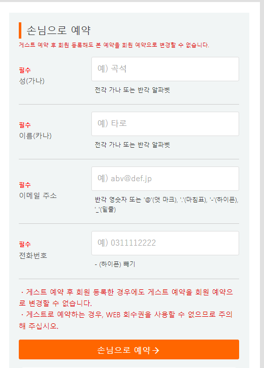 저는 손님으로 예약했어요. 회원 번거롭기도 할 것 같고 해서...