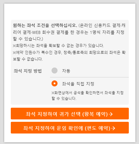 본인이 출발할 때 앉고싶은 자리를 선택하면