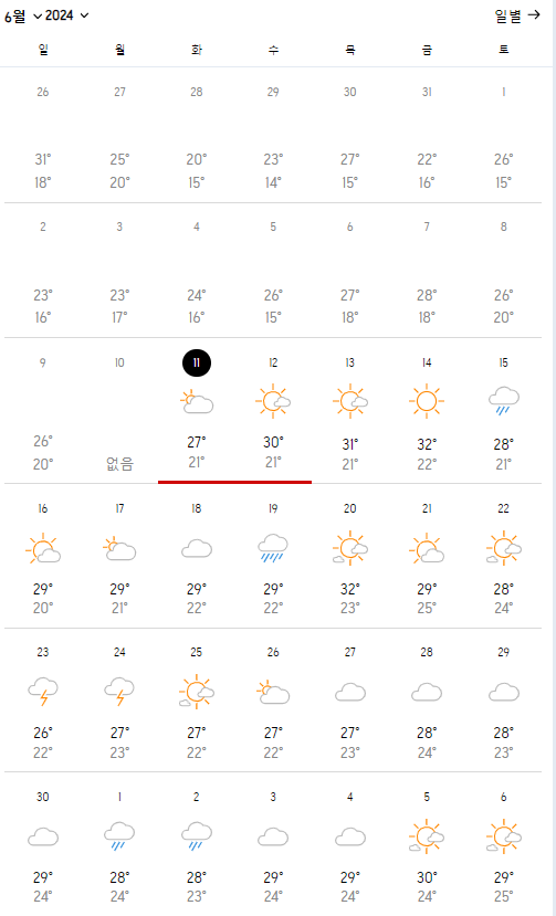 다만, 포스팅 시점의 날씨예보라 바뀔 수 있으니
