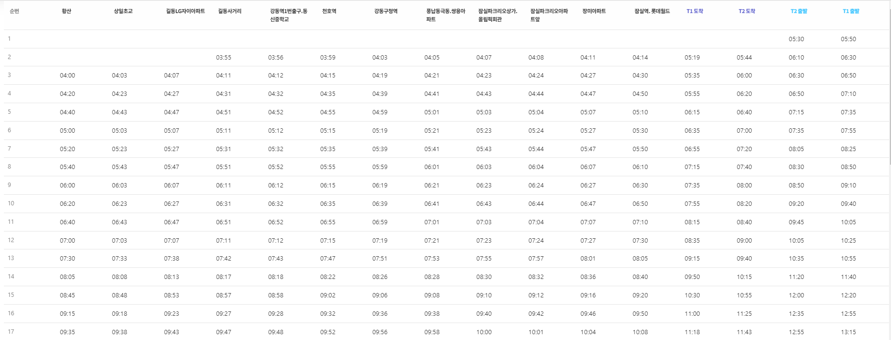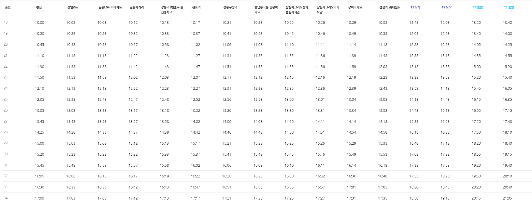 위에 공항버스 시간표 이미지가 잘 안보이신다면