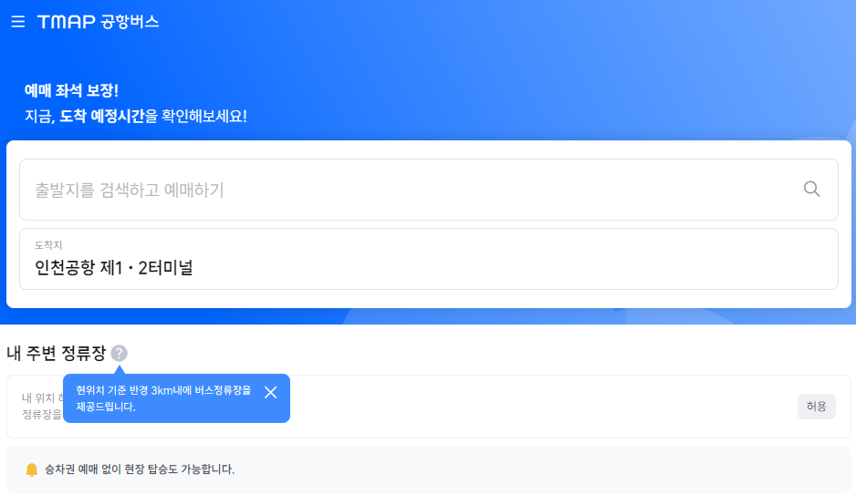 회원가입없이 TMAP 공항버스에서 승차권 예약이 가능합니다.