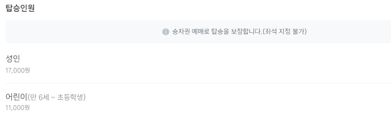 단, 예약하지 않고 현장에서 결제 후 탑승가능 합니다.