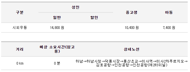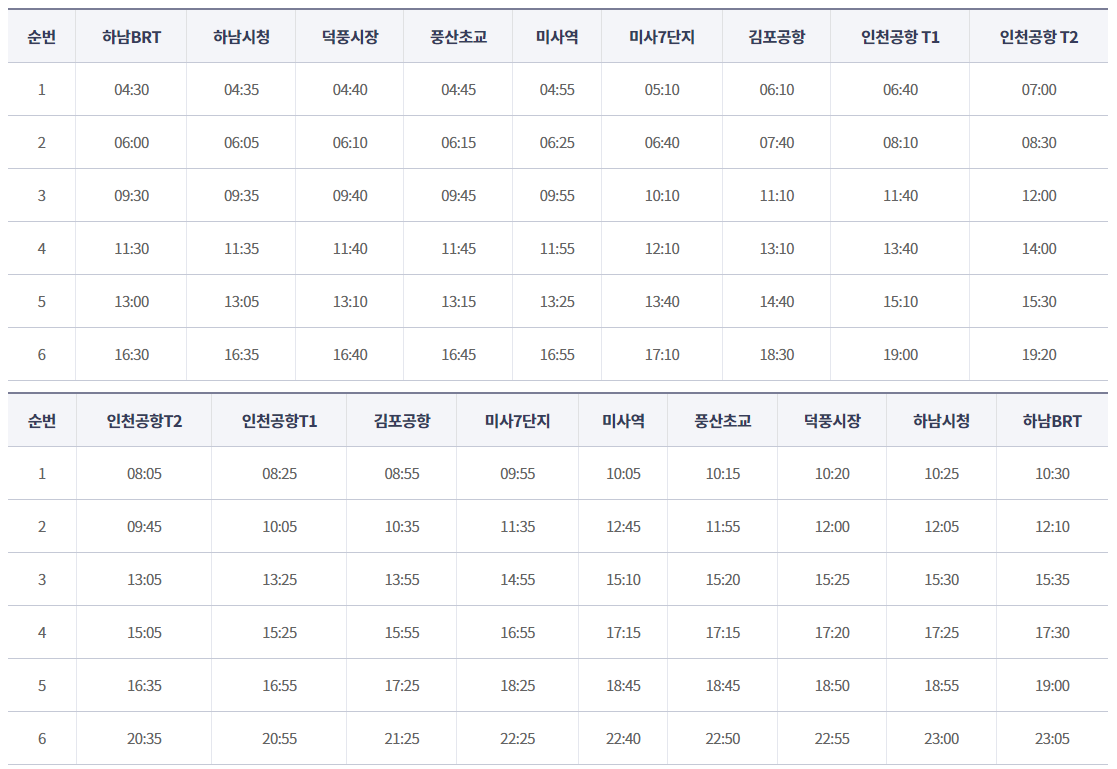 | 하남BRT → 인천공항 | 인천공항 → 하남BRT | |