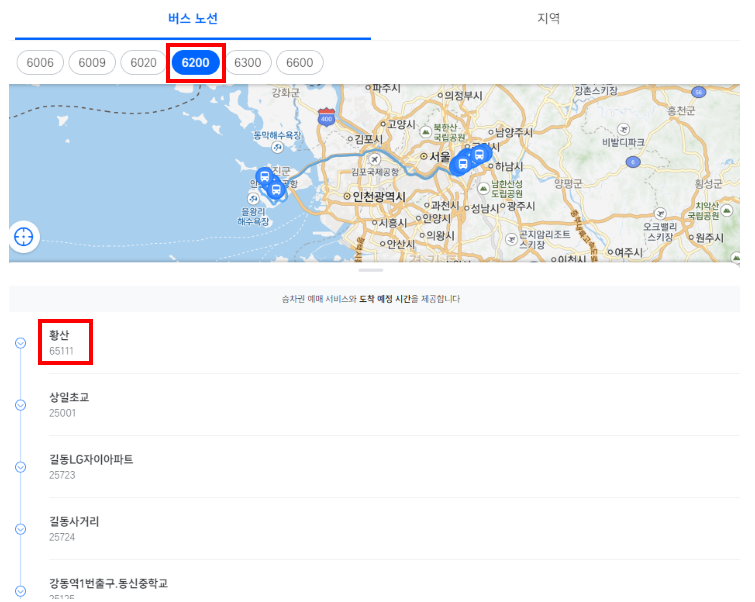 6500번 정류장별 시간표